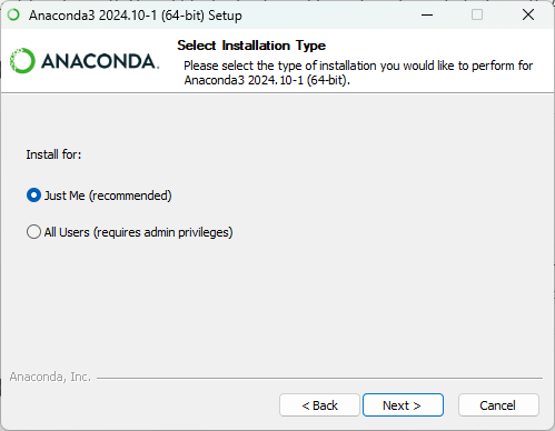 다운로드한 Anaconda3-202X.XX-Windows-x86_64.exe 파일을 실행합니다.