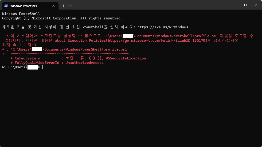 실행 정책을 RemoteSigned 또는 Unrestricted로 변경할 수 있습니다.