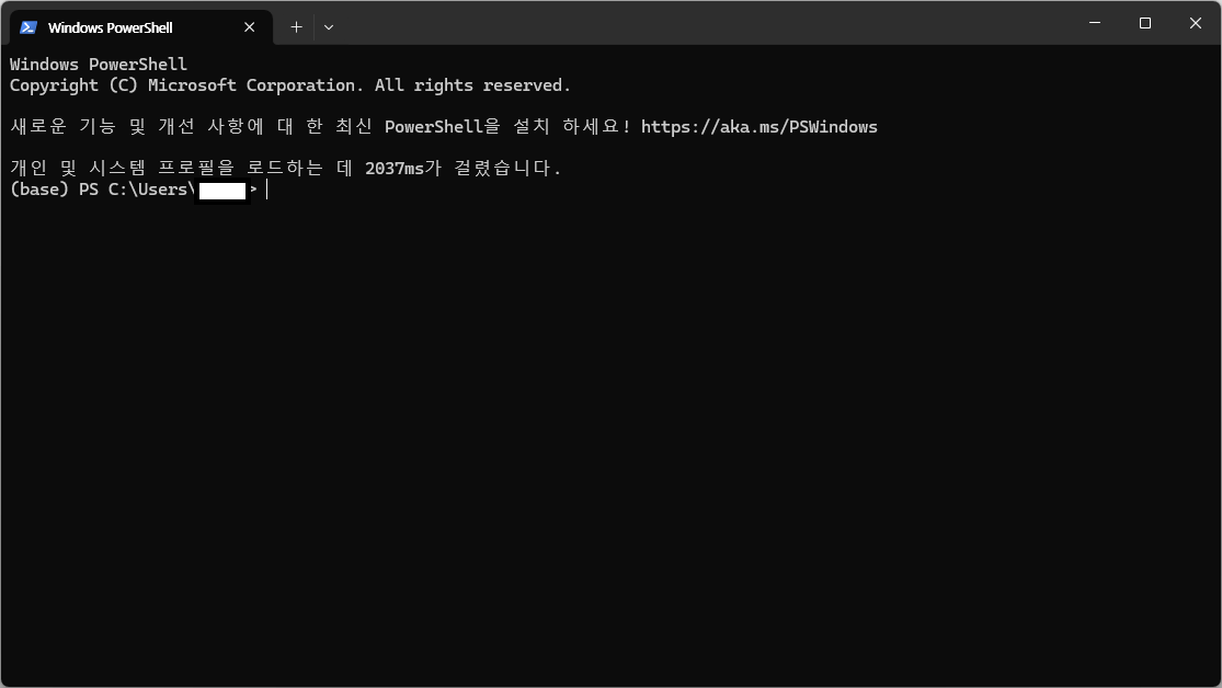 다음 명령어를 입력하면 현재 설정된 실행 정책을 확인할 수 있습니다. (기본값은 Restricted로 설정되어 있을 것입니다.)