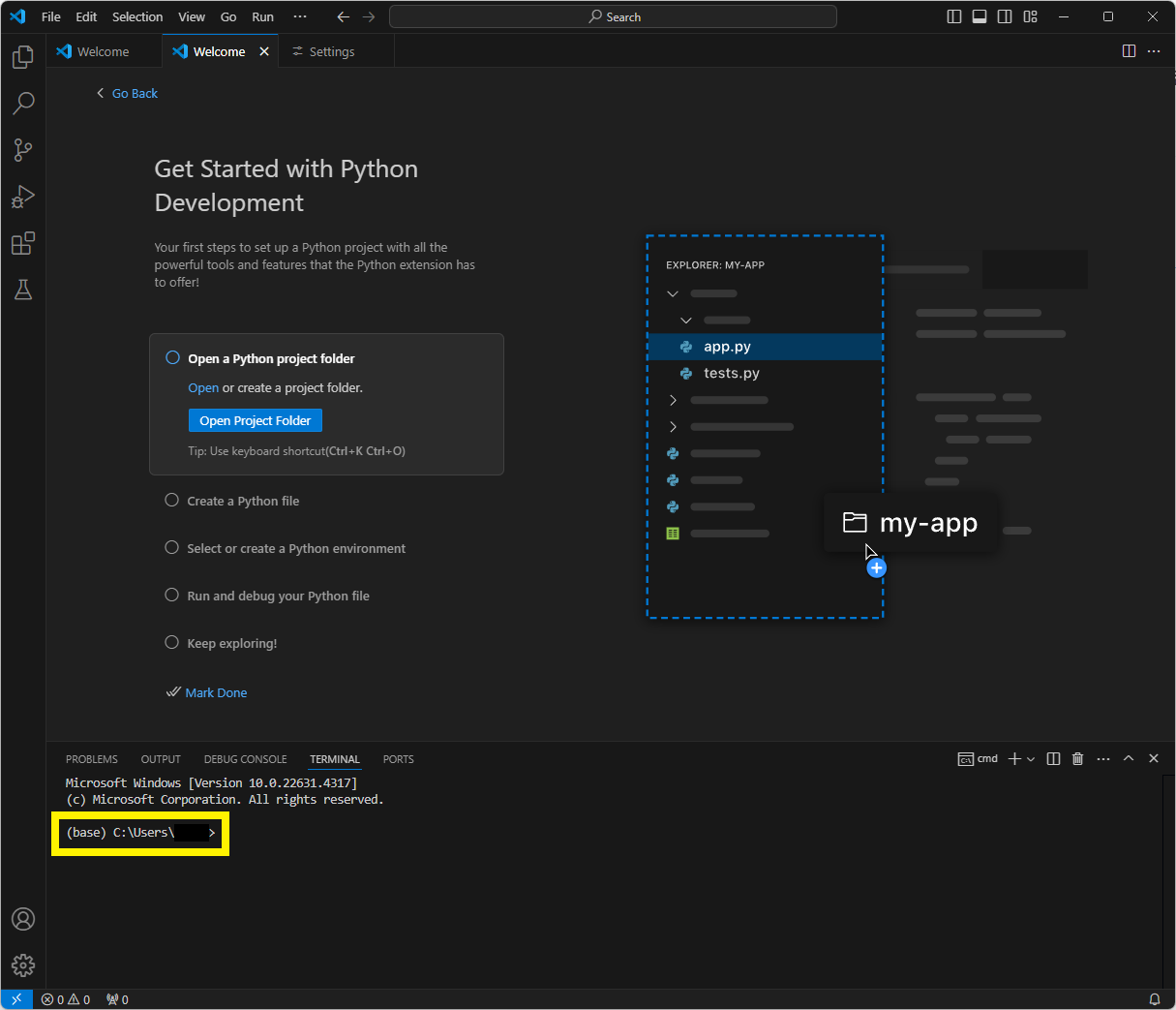 VS Code 기본 터미널에 conda 가상환경 활성화
